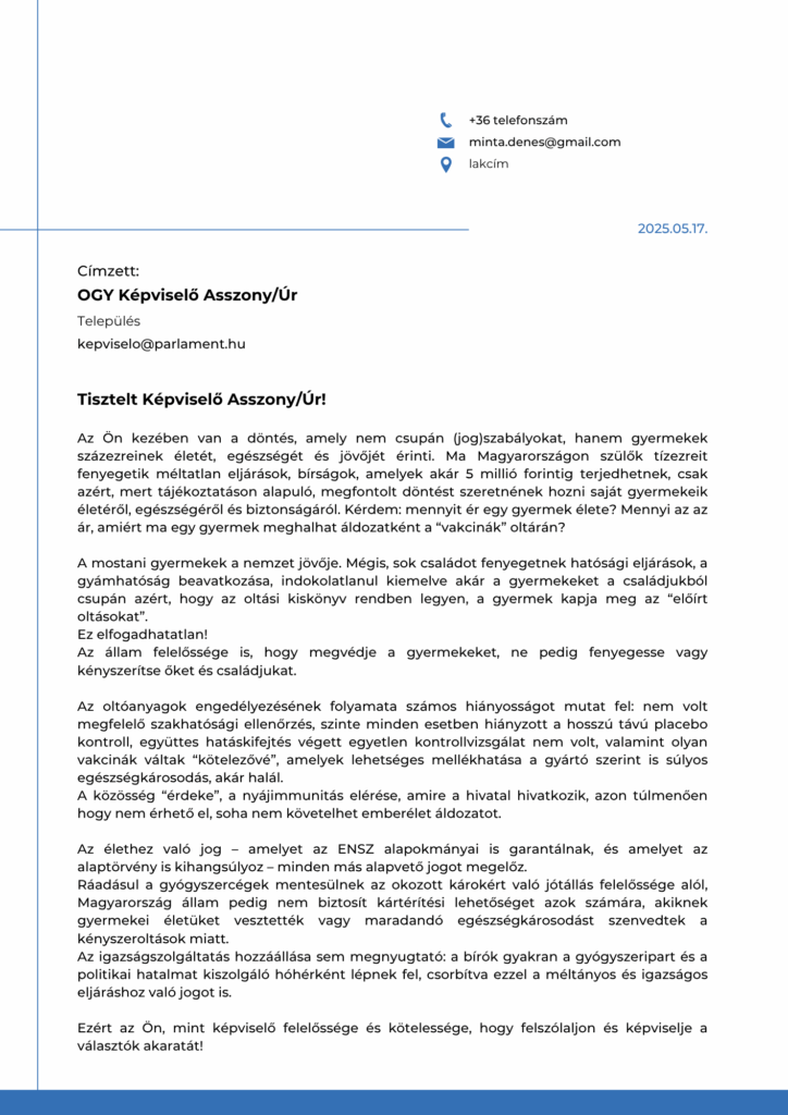 Legyen választható az oltás!